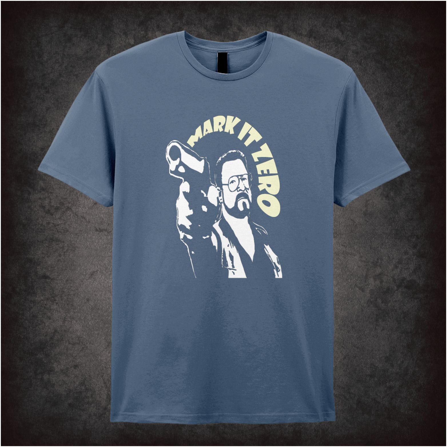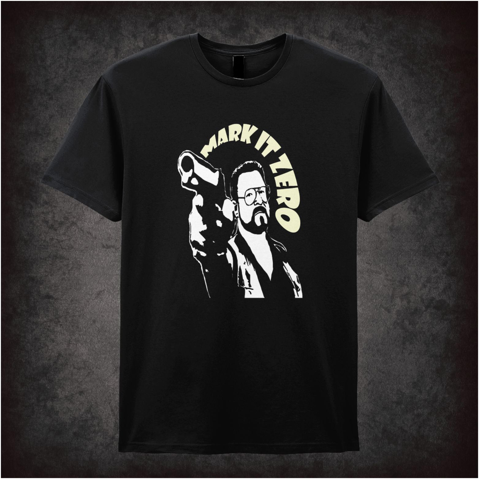 Inspired by the cult comedy The Big Lebowski (1998), this graphic tee references the unforgettable bowling alley outburst “Mark it zero!” from Walter Sobchak. A perfect nod to one of the film’s most quoted moments and its endlessly memorable characters.